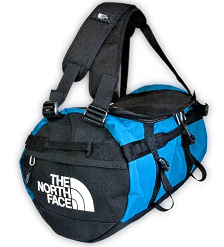 Größe S, The North Face, Gilman Duffel Bag, 50L TNF, strapazierfähige Sporttasche mit Rucksack-Schulterriemen und gepolsterten seitlichen Tragegriffen, schwarz/blau
